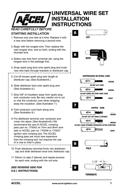 ACCEL's SuperStock 4000 series spark plug wire sets are designed to upgrade an OE ignition system for high-spark delivery levels for street driven applications. The 450 degree F rated silicone jacket is extruded over a tightly woven, rugged fiberglass braid. The braid is applied over high dielectric strength EPDM (Ethylene Propylene Diene Monomer) inner insulation for ignition wire performance that exceeds SAE specifications.