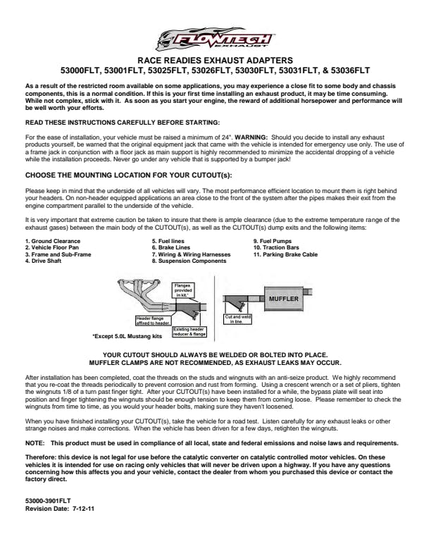 This device is intended for off-road racing only. It is not legal for use on pollution controlled motor vehicles that will be driven on public roads or highways.